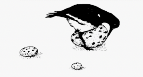 Supernormal-stimulus: Bird caring for an extra large, but false, egg.